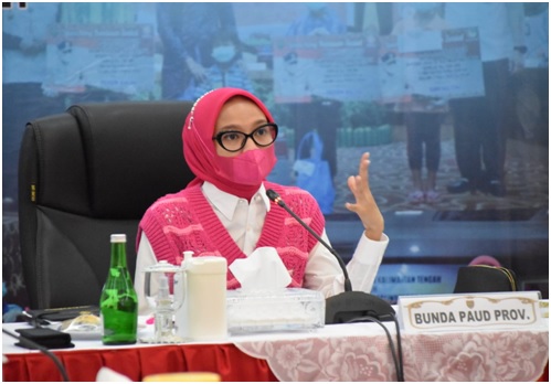 Bunda PAUD Provinsi Kalteng Yulistra Ivo Azhari Sugianto Sabran saat membuka secara resmi kegiatan sosialisasi pengembangan PAUD Holistik Integratif dari Aula Serbaguna, Istana Isen Mulang, Rabu (14/7/2021). (Media Dayak/MMC Kalteng)
